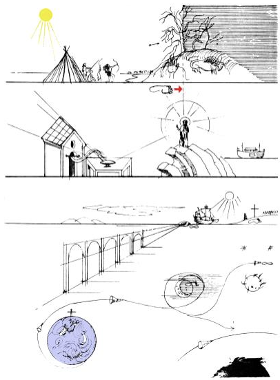 Са овим низом табли који се успиње, може се поставити хипотеза за тумачење савремене западноевропске свести, чијим се крајњим дометом сматра просвећени рационализам 18. века и савремена „рационална“ наука. Лаик званичне цивилизације ће зато ову шему прихватити као природну и стварну, јер није свестан колико је под утицајем Евклидових аксиома, које једноставно живи. На тај став лаика утиче очигледност механике крутог тела и очевидност кретања Сунца и Месеца. На дубљем плану, ови појмови ће наћи потврду у Демокритовим атомима, у Њутновој теорији светлости, према којој је светлост сноп лоптица, односно у теорији Руђера Бошковића, по којој се светлост састоји од тачкица које јуре празним простором Космоса. Бошковић, тако, оличава успон тачке у епохи просвећености. Тачка је и бесквасна малена хостија, крајње сажети облик хлеба са којом се причешћују католици и који није честица као део ломљења великог колача – просфоре.