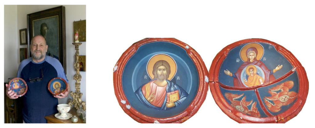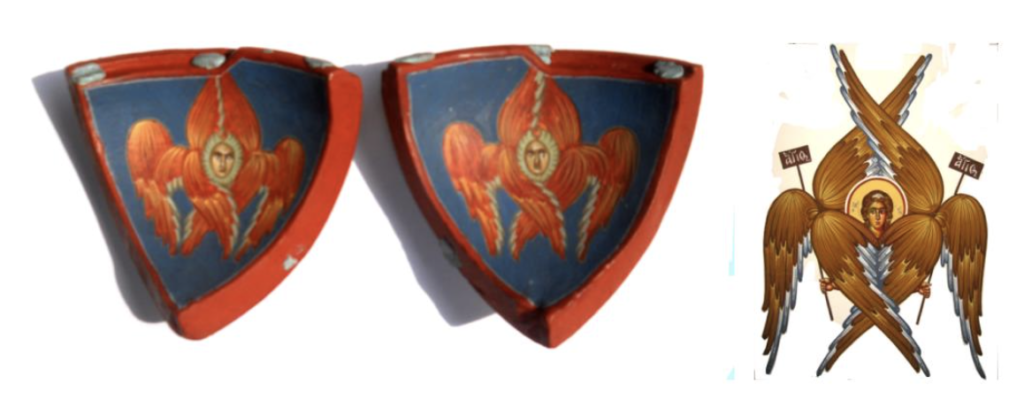 Овај горњи бој је први и најбитнији чин Свете Тајне грађења. То није само бој – бојиште, где је сишао Спаситељ, већ је и место где се Бог ологосио у живопису – лику и облику. Облик је аксиоматска полулопта, озарена златном бојом унутрашње светлости, са препознатљивим ликом Богочовека. Одбачена доња и изабрана горња полулопта, чине половине отрицатељне (апофатичке) љубави Божје, коју нам је Бог дао, испразнивши се до половине, остајући при томе пун и тим литургијским чином је и нас испунио.