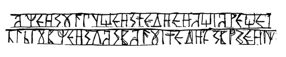 Не памтим када је настала, али наилазим ту и тамо на загубљене прибелешке из тих дана. У ствари, одавно говорим да на факултету нисам ништа ново научио, ако то већ раније нисам знао, тако да, од својих измишљотина, често нисам могао да разликујем оно што већ постоји као призната наука и обавезан школски програм. Професор Александар Дероко нам је причао како је дошао до, из једног комада издељаног троношца. Купио га је за два динара од једног брђанина, који је побегао из свог села, али не у град него у врх планине. Био је неписмен, али је измислио своју азбуку и свој језик са граматиком. Недељом је долазио у цркву. Тамо је слушао Литургију и „чтеније“. Све је запамтио, превео на свој измишљени језик и записао својим измишљеним писмом.