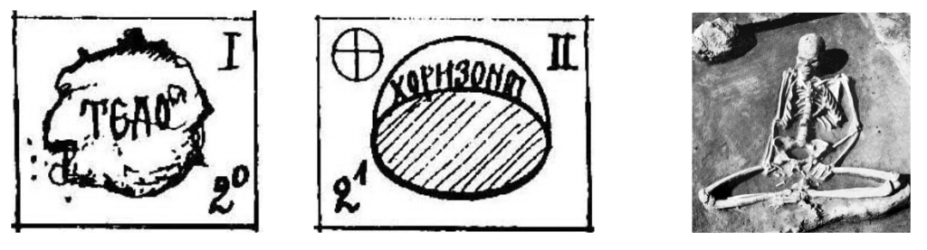 Узимамо четвртину Тела и сечемо је на две осмине. Добијамо две тачке – А и В, од којих је једна мушка, а друга женска. Пре него што је исечено, Тело има само једну тачку са лицем и наличјем. Тек раздвајањем Тела на осмину, долази се до тачака мушких и женских, у којима се ствара, односно рађа човек. Ове тачке отварају апсолутну могућност за доказивање Бога, односно за доказивање Постања. Тако Постање може да се објасни и докаже. Доказ се губи у тами када се спушта, или уздиже по лествицама Постања, али нам као узданица остаје истинито Тело, које се ничим не објашњава до Телом Божијим, којим се причешћујемо као нафором – хлебом, телом Христовим.