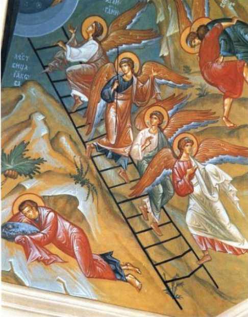 Испод Јаковљеве главе, камен темељац је био само безобличан камен, узглавље сна, јер се у Старом завету Бог још није ологосио. Била је то црква без Христа, без чуда, црква без оружја – силе Божје у двогубим копљима војске Небеске.