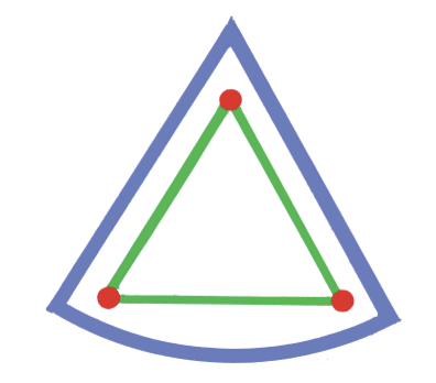 Једна тачка је ван праве, а најмање три тачке одређују површину. Свака површина може да се избаждари на троугласте делта – честице – парцеле. Троуглови чине основни размерник при триангулацији површине, размеравањем дужина, размеравају се и површине. Поступак постаје реалнији кад се обавља на тлу, на земљи. Тако је премеравањем површине тла настала геометрија; по земљи су забијани колци, као тачке и затезани конопци, као дужи, а између њих је била земља – тло.